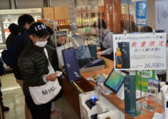 [写真/厚岸町の道の駅「コンキリエ」で新商品を買い求める人 ]