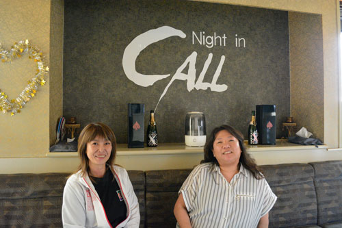 [写真/Night in CALLは6月は3日間、昼スナックをオープン。「息抜きにいかがですか」と笑う、オーナーママの石森さん(右)とママの永田さん ]