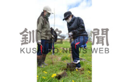 河畔林再生でNPO、浜中中生が植樹(2021-06-06)