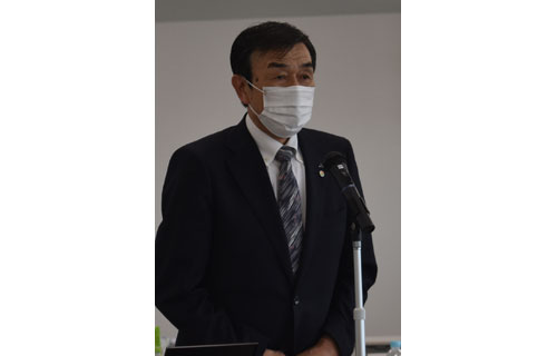 [写真/国際化に対応した経営を確立するため機械化や省力化に言及する原井組合長 ]