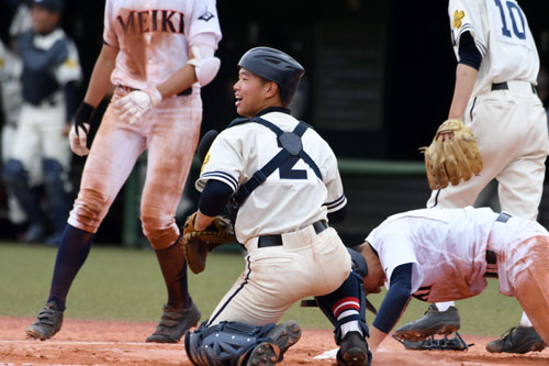 [写真/【Bブロック1回戦、釧江南―釧明輝】7回、複数失点の危機を防いだ釧江南の捕手阿部 ]