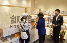 [写真/銀座の本店から応援に駆け付け、接客する高橋社長(右) ]