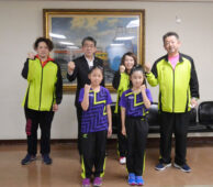 [写真/ガッツポーズで健闘を誓う難波さん(手前左)と速水さん ]