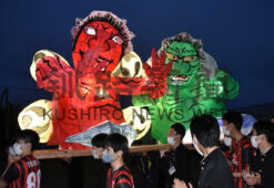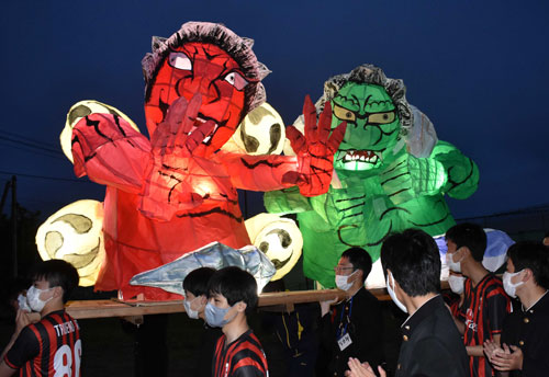 [写真/3年1組が製作したあんどん「風神雷神」(湖陵高) ]