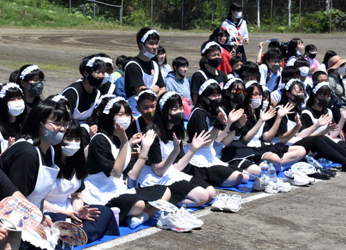 [写真/テーマに沿った衣装を身に着け他クラスを応援する生徒たち(北陽高) ]
