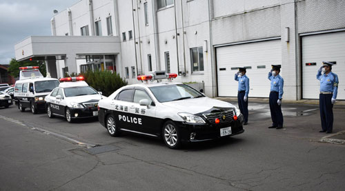 [写真/弟子屈署前で行われた夏の交通安全出動式 ]