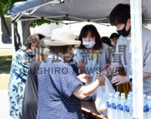 [写真/特製ホタテカレーを受け取りに訪れた地域住民 ]