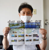 [写真/スタンプラリーについて紹介したJAF会員誌(8・9月号)を手に熊坂さん ]