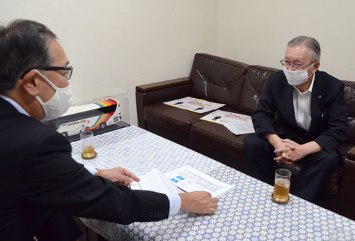 [写真/大規模地震が発生した際の企業リスクなどについて話す深谷社長(右)と織田支店長 ]