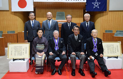[写真/受賞した高田氏(前列左から2人目)と小西氏(同右) ]