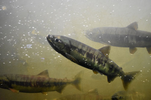 標津サーモン科学館営業再開 魚道水槽でサケ・マス遡上_1(2021-10-01)