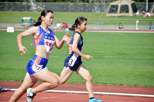 [写真/【女子100㍍】秋風を背に受け健脚を飛ばす選手ら ]