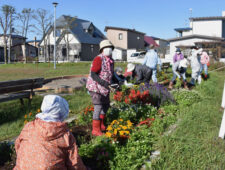 [写真/花の抜き取りや土起こしなど花壇整備を行う女性たち ]