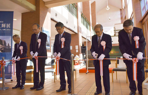 [写真/展覧会の主催者代表とともにテープカットを行う羽生氏(右から2人目) ]