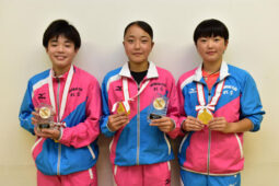 [写真/レーザーラン国内大会で優勝した(右から)太田楓さん、太田捺さん、中山晏侍君 ]