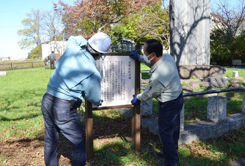 東北海道屋外広告業協会が佐野碑園の解説看板4基改修(2021-10-18)