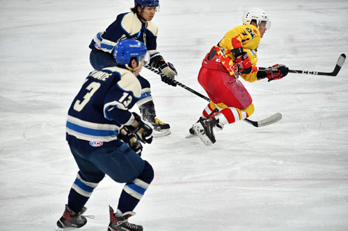 [写真/【日本製鉄室蘭―釧路東部ブレイズ】新入団のFW川口。第2ピリオド17分、一矢報いるゴールを決めた ]