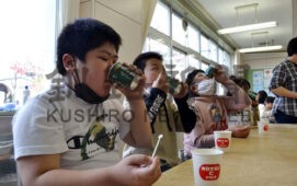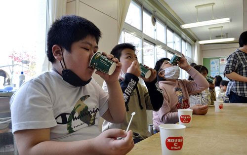 新陽小児童が地産地消学ぶオロナミンC出前授業(2021-10-27)