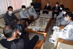 [写真/石垣市長を表敬する学部生ら ]