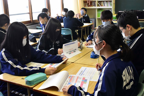 [写真/根室の未来像を話し合う光洋中の3年生 ]