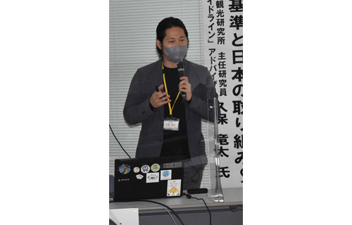 [写真/持続可能な観光地の基準とはをテーマに講演する久保さん ]
