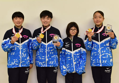 [写真/好成績を収めた根室スイミングクラブの太田楓さん、中山晏侍君、谷口心優さん、太田捺さん(左から) ]