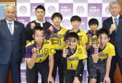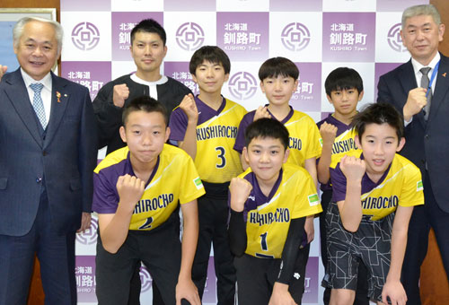 バレーボールの道交流大会出場の釧路町アローズが役場表敬(2021-11-19)