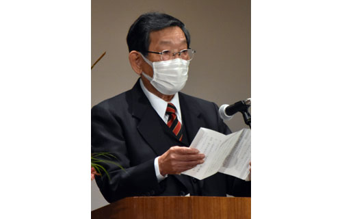 [写真/式辞で地域の継続した支援を呼び掛ける下村会長 ]