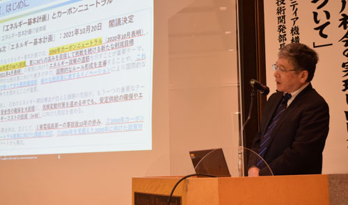 [写真/国のエネルギー政策などについて説明する大中さん ]