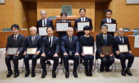 [写真/献血功労を受賞した9団体の代表者ら ]
