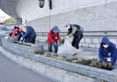 富士見坂の花壇、キンレンカの会が草や根の後始末(2021-11-29)