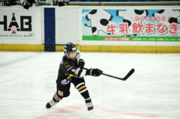 [写真/【Bブール、釧路ベアーズ―VORTEX SAPPORO】第1ピリオド5分、パワープレーで長距離砲を放つDF佐野。チームを勢いづける2点目のアシストに ]