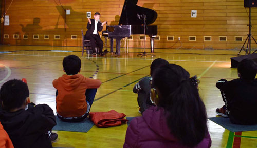 釧路出身の木原さん、清明小でピアノライブ(2021-12-06)