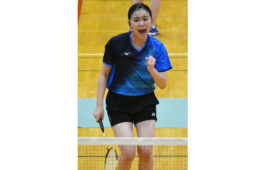 [写真/【シングルス決勝】得点を奪いガッツポーズする根室光洋の高井 ]