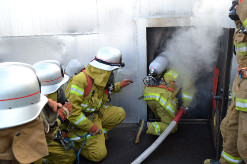 [写真/煙が充満し最高温度150度の坑道内に侵入する隊員たち ]