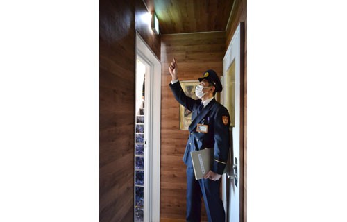 [写真/避難経路を確認する消防職員 ]