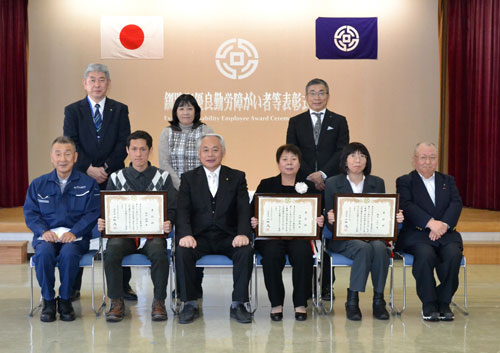 [写真/町優良勤労障がい者表彰受賞者ら ]