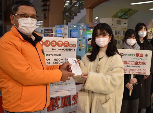釧路ぬさまいLC、献血活動の看護学生に寄付(2021-12-26)
