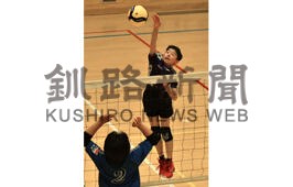 [写真/【男子・男女混合ブロック準決勝、釧路J―Spirits―興津Kid’sMIX】力強いアタックでチームを勝利へ導いたJ―Spiritsの大湊幸(こ)憂(う)主将(5年) ]