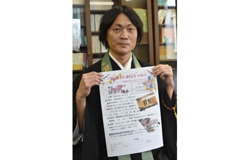[写真/「ぜひ素敵な出会いを」とPRする菅原住職 ]