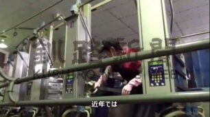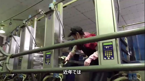 [写真/牛舎の清掃作業をする利用者(作業風景の動画より) ]