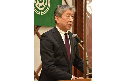 [写真/あいさつする三原会長 ]