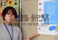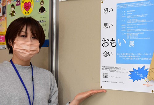 [写真/「あなたの『おもい』を表現してください」と応募を呼び掛ける職員 ]