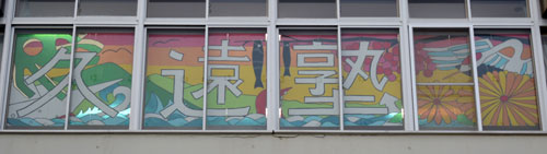 白糠高校美術部が久遠塾の窓看板製作(2022-02-13)