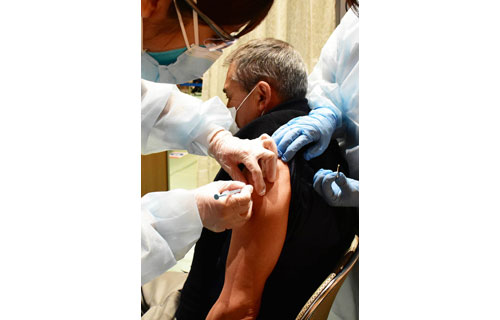 [写真/65歳以上の市民への3回目ワクチン接種が始まった(14日午後1時30分すぎ) ]