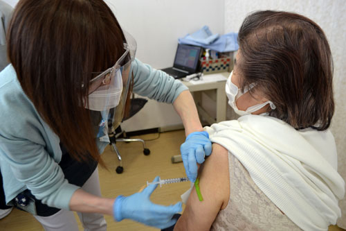 [写真/釧路脳神経外科で行われた一般高齢者を対象とした3回目のワクチン接種(14日午後2時ごろ) ]