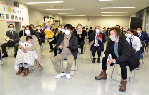 「綾乃 よくやった」 地元厚岸、テレビで応援(2022-02-16)