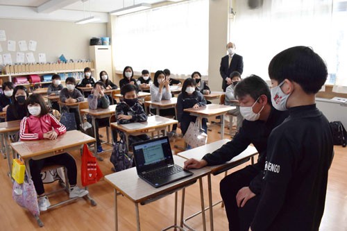鳥取小と鳥取県の賀露小がオンライン交流(2022-02-18)