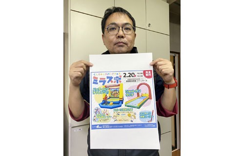 [写真/さまざまなスポーツを体験できる「ミラスポ」をPRする信太副理事長 ]