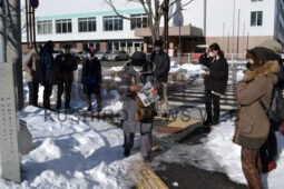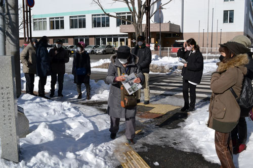 [写真/市民9人が参加した第1弾「?木 来釧記念日 ?木の記憶を歩く」 ]